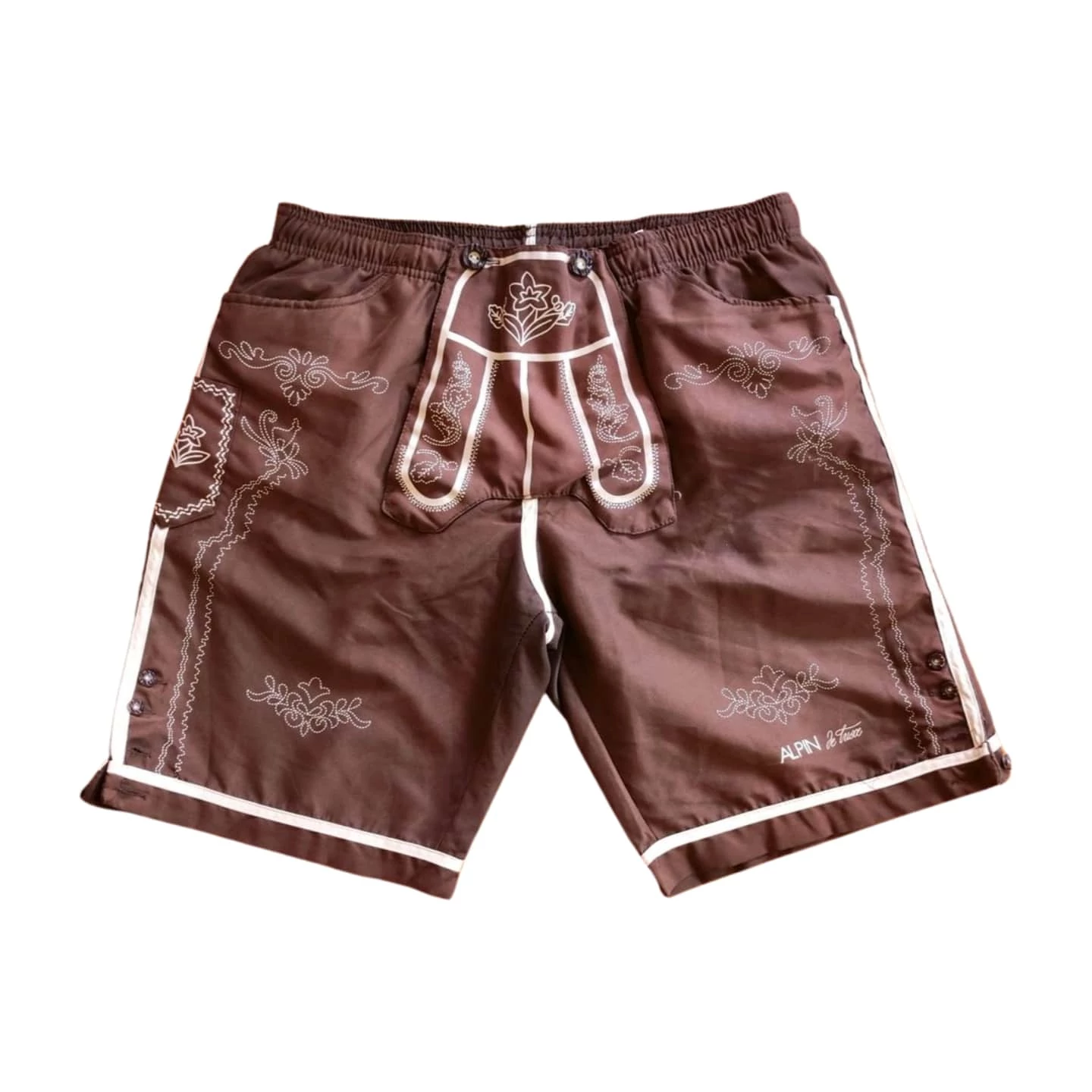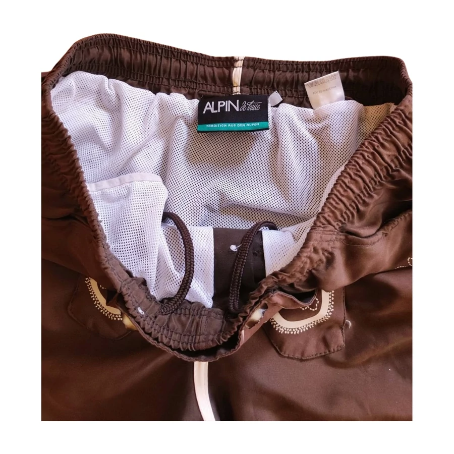 Ez az Alpin barna bajos mintás férfi sport rövidnadrág egy izgalmas sportos darab, amely nem hiányozhat egy kalandvágyó férfi ruhatárából sem. Vékonyabb anyagból készült, aminek belső bélése hálós. Kiváló választás a testmozgáshoz, de akár kényelmes otthoni viselet is lehet. Gumis dereka miatt könnyű benne a mozgás, jól illeszkedik. Ilyen nadrág biztosan nem jön veled szembe az utcán. Ajánlott átlagos testalkatú férfiaknak. Úszáshoz, strandoláshoz is alkalmas nadrág.