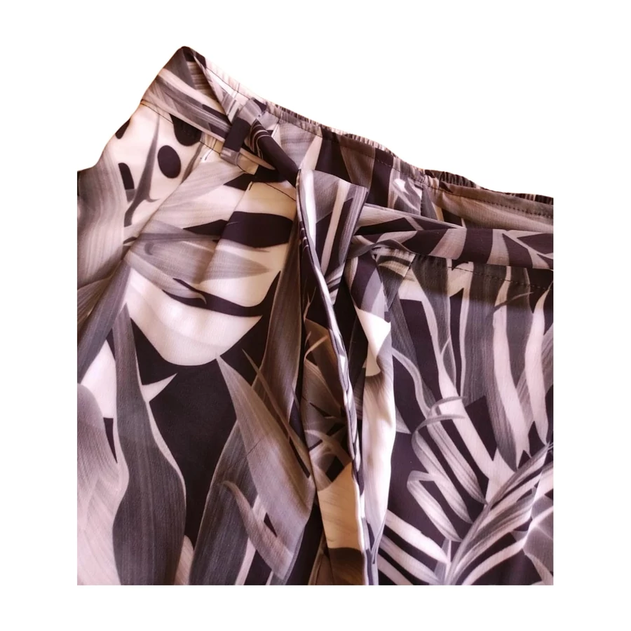 Ez az Amisu szürke mintás női nadrágszoknya puha, lenge, jól szellőző anyagból készült, amely kényelmessé teszi a meleg nyári napokat. A dereka rugalmas, gumis, így nagyon komfortos viselet. Fazonja bő szárú. Bátran kombinálható egy nyári toppal vagy felsővel, de jól mutat elegáns ruhákkal is. Ez a darab átlagos testalkatú hölgyeknek ajánlott.
