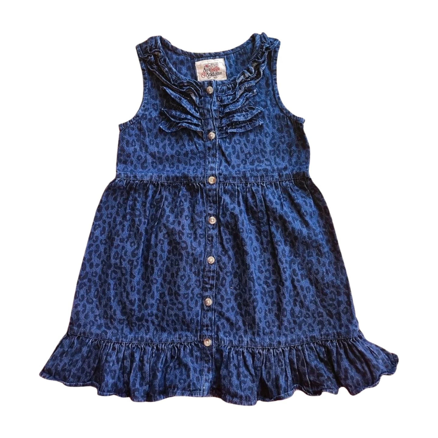 Ez az Arabella & Addison sötétkék kislány farmer kötényruha egy nagyon kényelmes darab, amely kiváló választás hétköznapi viseletnek, de alkalomhoz is megfelelő. Vékonyabb farmer anyagból készült. Anyagán diszkrét mintázat látható. Fazonja lenge, klasszikus. Remek választás a nyári napokra is.