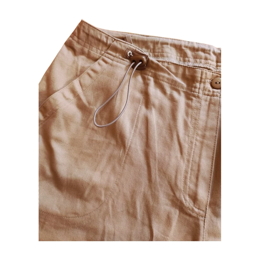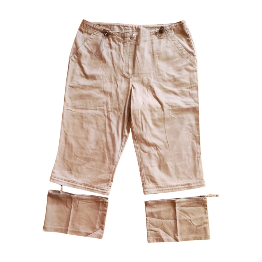 Ez a barna terepszínű női 3/4-es túranadrág kényelmes, funkcionális viselet, amely strapabíró pamut anyagból készült. Klasszikus fazonú, így kiemeli a lábakat és a csípő vonalát,de hossza miatt mégis diszkréten takar. A szára igény szerint megtoldható, így a lábszár nagyobb részét takarhatja. A cipzár nem karcolja a bőrt, diszkréten rejtve fut a szár alján. Igazi alapdarab, amely sportos kiegészítőkkel is jól kombinálható. Színe kellemes, ami jól alkalmazkodik a szabadtéri körülményekhez. Ez a darab átlagos alkatú hölgyeknek ajánlott.