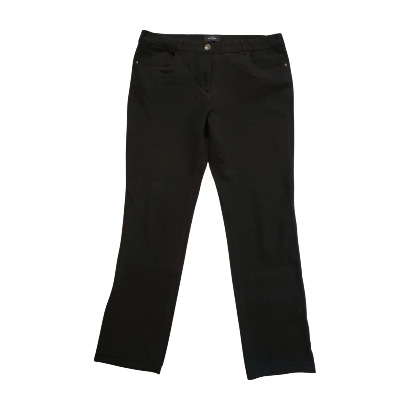 Ez a Bexley's fekete női nadrág puha, sűrű szövésű pamut anyagból készült, amely kényelmessé teszi a hétköznapi megjelenést is. Fazonja klasszikus, amit elegáns kiegészítőkkel is hordhatsz. Bátran kombinálható nőies blúzokkal és blézerekkel is. Ez a darab átlagos testalkatú hölgyeknek ajánlott.