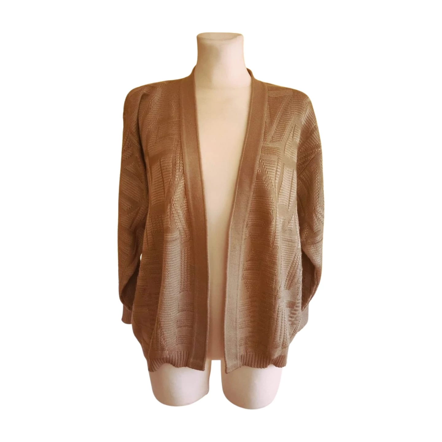 Ez a bézs kötött női kardigán egy nagyszerű darab, ami jól kombinálható egy kényelmes farmerrel vagy nőies kiegészítőkkel. Puha, akril anyaga miatt nagyon komfortos viselet. Fazonja klasszikus, kissé lenge. Kiváló választás egy hétköznapi szetthez vagy kikapcsolódáshoz, de elegánsabb öltözetnek is megfelelő. Nincs gombsora, nem összegombolható. Ajánlott átlagos alkatú hölgyeknek.