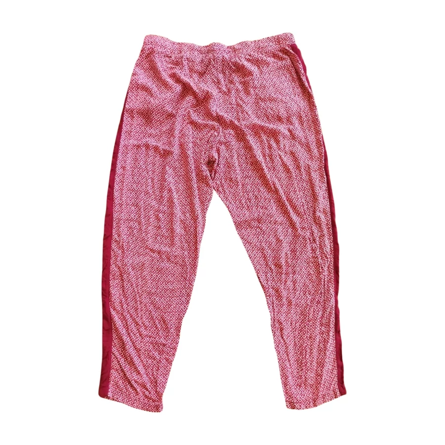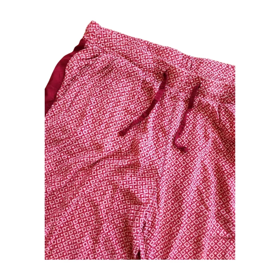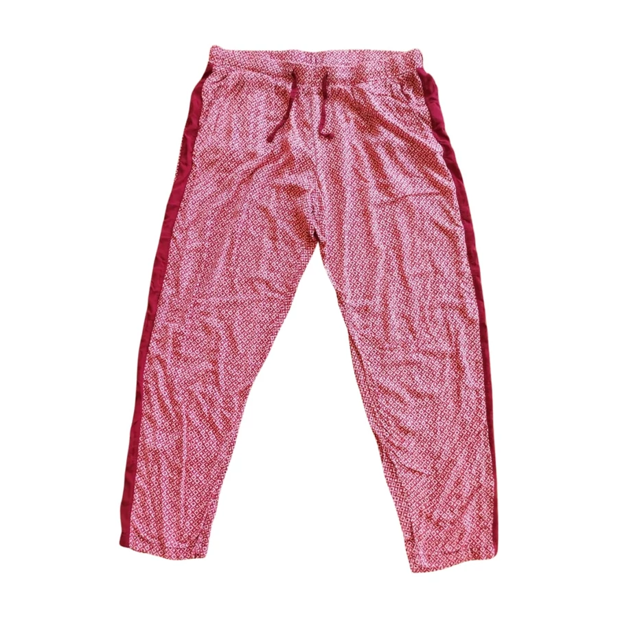Ez a Blue Motion piros mintás vékony női nadrág puha, lenge, jól szellőző anyagból készült, amely kényelmessé teszi a meleg nyári napokat. A dereka rugalmas, gumis, így nagyon komfortos viselet. Jól mutat egy nyári papuccsal vagy szandállal. Bátran kombinálható egy nyári toppal vagy felsővel. Ez a darab átlagos testalkatú hölgyeknek ajánlott.