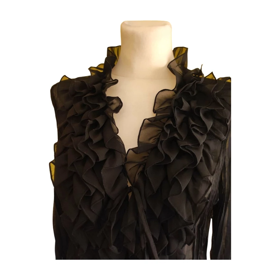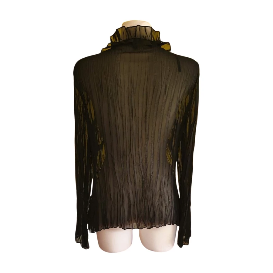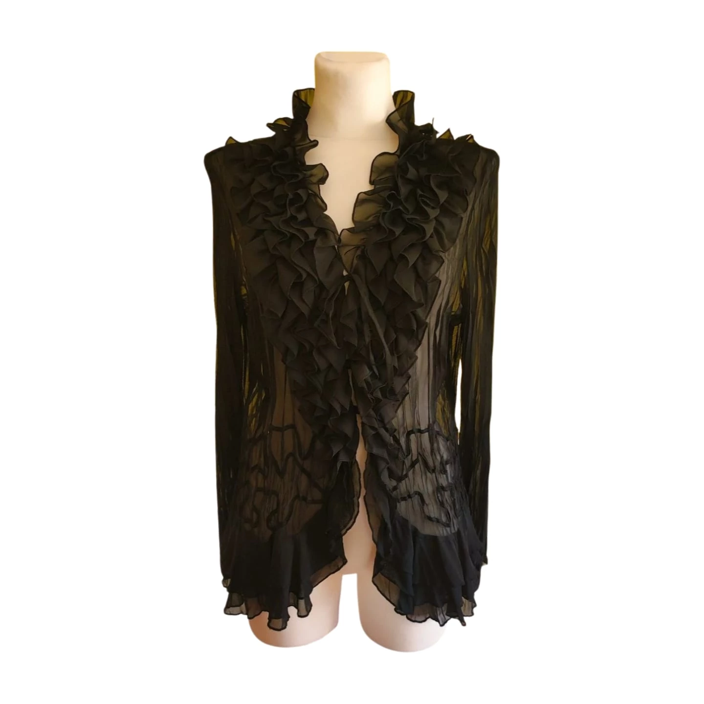 Ez a C&A fekete fodros női blúz egy csinos, izgalmas, nőies darab, amely kombinálható több stílusú ruhadarabbal, legyen az különleges alkalmi vagy elegáns. Rugalmas puha anyaga kényelmes viseletté teszi. Jól mutat egy csinos szoknyával vagy szövetnadrággal is. Extravagáns megoldása miatt igazi különleges darab. Anyaga vékony, kissé átlátszó. Ajánlott átlagos alkatú hölgyeknek.