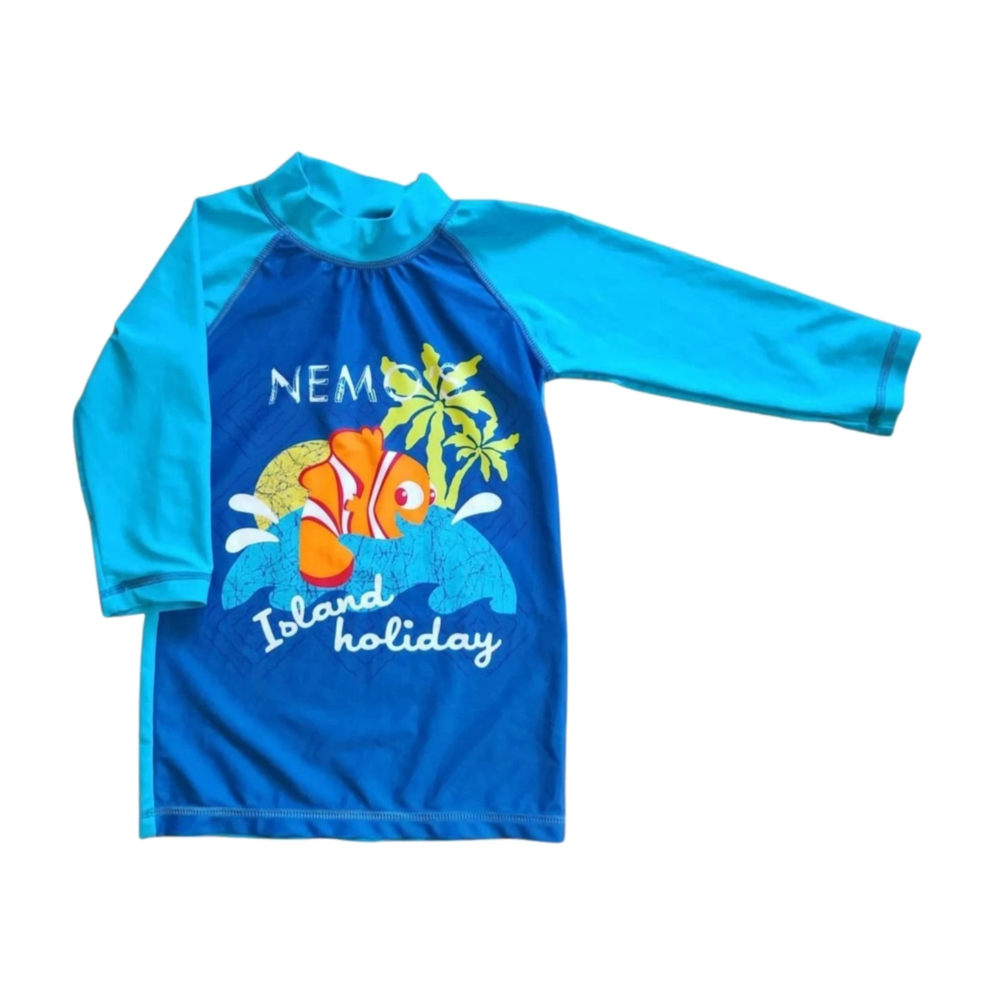 Ez a Disney Nemo mintás kék kisfiú fürdőpóló puha, elasztikus lycra anyagból készült. Fazonja illeszkedik a test vonalához. Kiváló választás egy divatos, nyári fürdő szetthez kisfiúk számára. Ez a darab kielégíti a gyermeked igényeit, és kíméletes a bőrükhöz. Kiváló választás, ha óvni szeretnéd gyermeked bőrét a káros napsugaraktól.