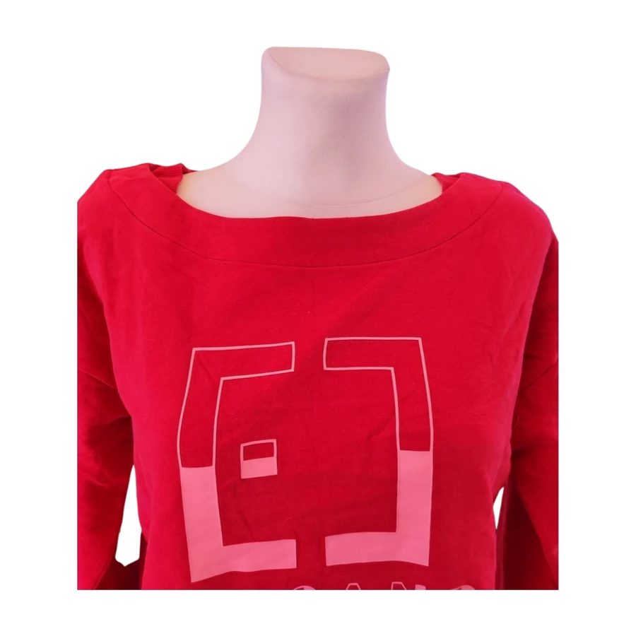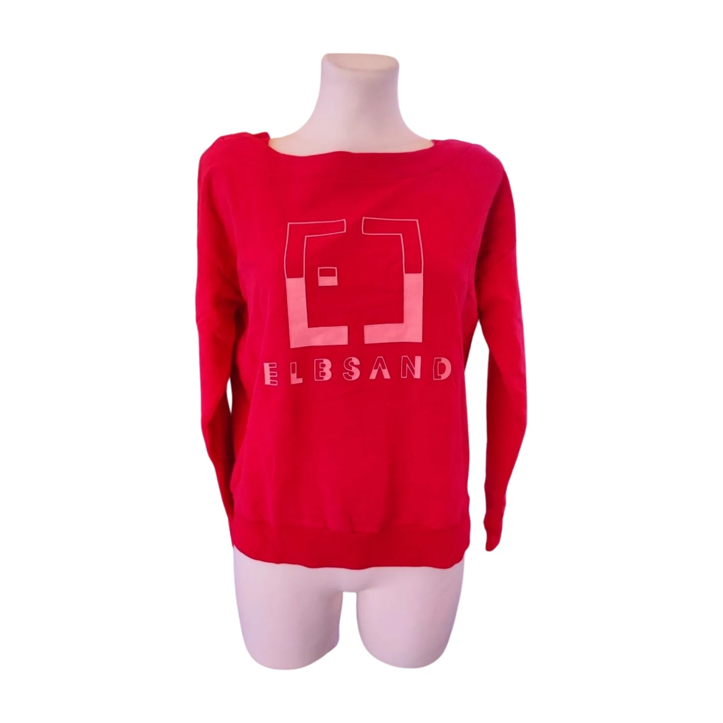 Ez az Elbsand piros női sport pulóver egy fiatalos darab, amely kiváló választás a testmozgáshoz és kikapcsolódáshoz, de akár kényelmes hétköznapi és otthoni viselet is lehet. Klasszikus fazonja miatt könnyű benne a mozgás, jól illeszkedik a test vonalához. Ez a darab közepesen vastag, rugalmas pamut anyagból készült. Ajánlott átlagos alkatú hölgyeknek.
