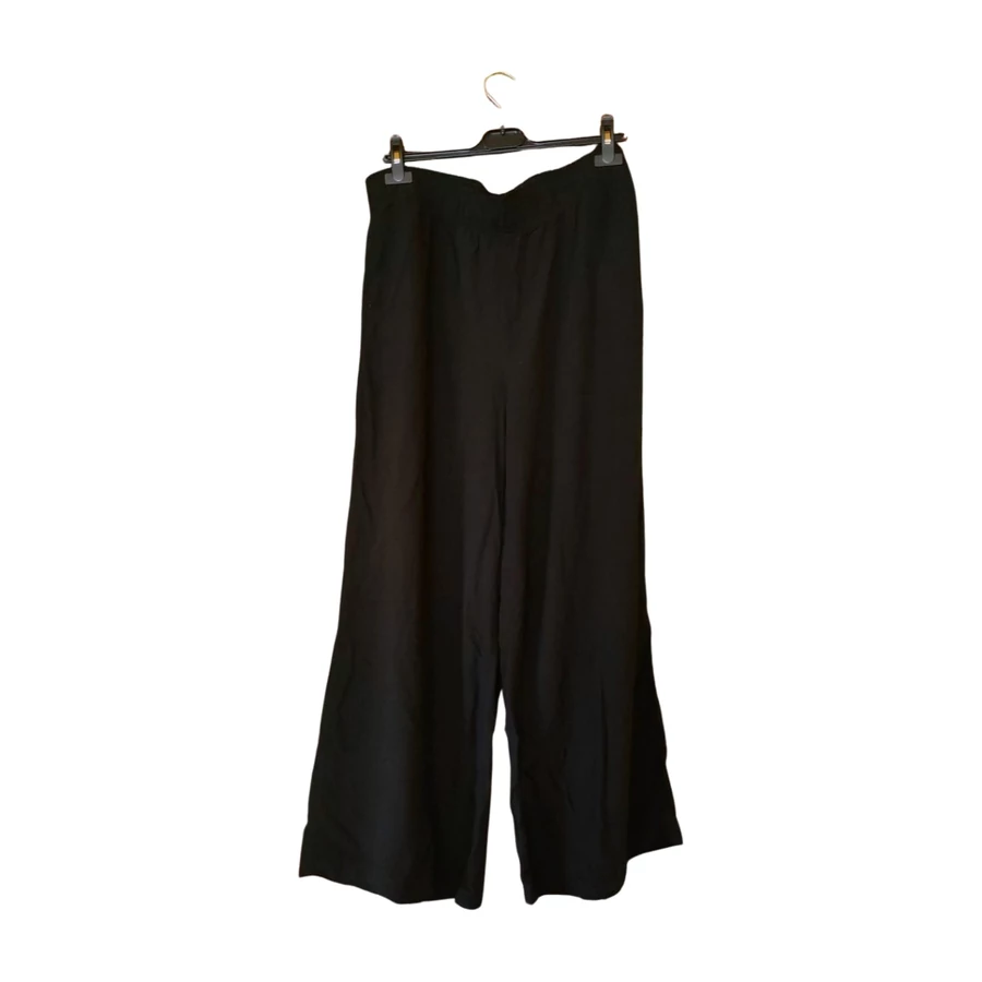 Ez az Esmara fekete vékony női nadrág puha, sűrű szövésű, jól szellőző anyagból készült, amely kényelmessé teszi a nyári napokat. A dereka rugalmas, így nagyon komfortos viselet. Jól mutat egy nyári papuccsal vagy szandállal, de kényelmes vászoncipővel is hordható. Bátran kombinálható egy nyári toppal vagy felsővel. Fazonja magas derekú, lenge, bő szárú. Ez a darab átlagos testalkatú hölgyeknek ajánlott.