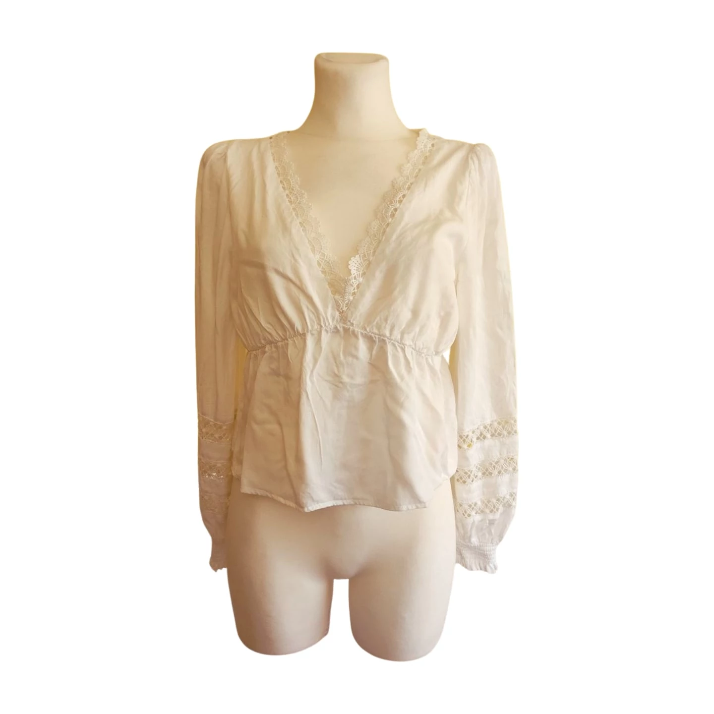 Ez a Guido Maria Kretschmer fehér női blúz egy csinos darab, ami sokdalú és jól kombinálható hétköznapi vagy akár más nőies, elegáns kiegészítőkkel is. Kiváló választás egy hétköznapi szetthez, programokhoz. Fazonja mély dekoltázsú, ujja hosszú, áttört horgolt mintával díszítve. Puha, vékony pamut anyaga miatt nagyon komfortos viselet. Ajánlott átlagos alkatú hölgyeknek.