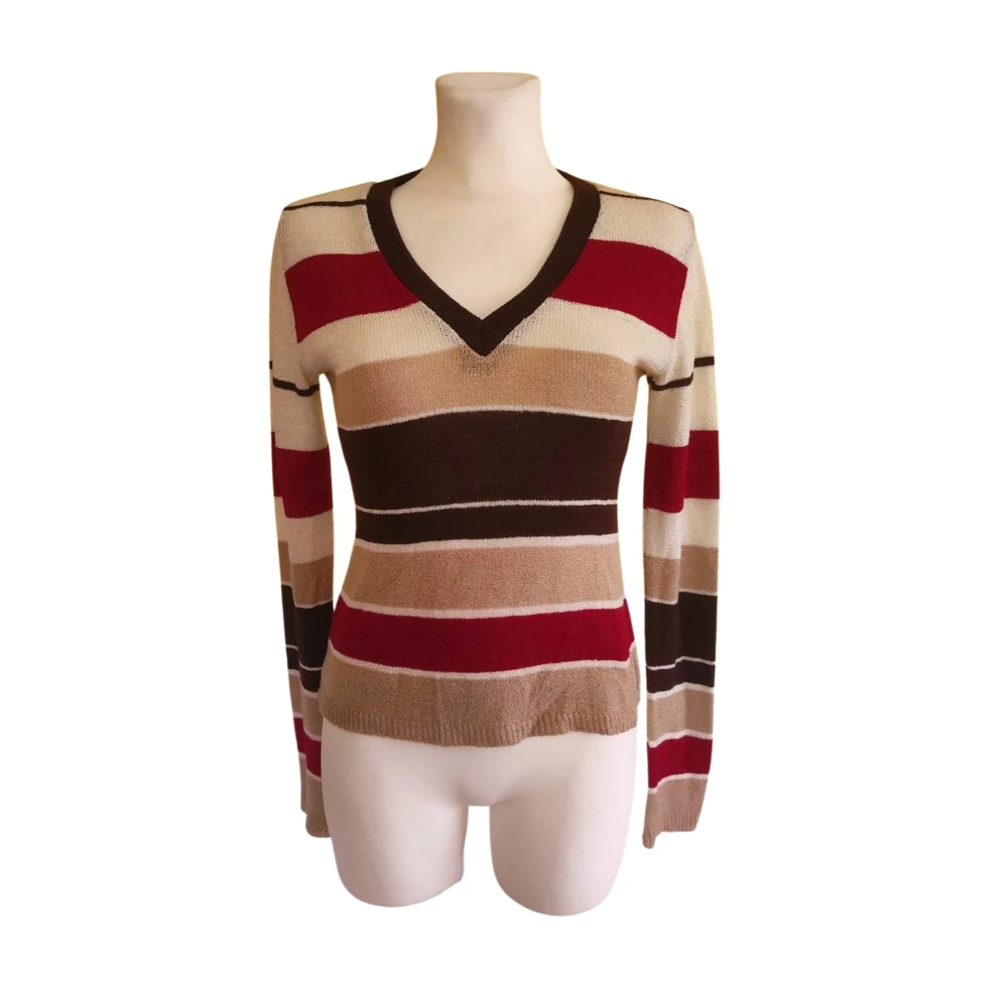Ez a Hennes barna csíkos vékony női pulóver egy nagyszerű darab, ami jól kombinálható egy kényelmes farmerrel vagy nőies kiegészítőkkel. Puha, rugalmas anyaga miatt nagyon komfortos viselet. Fazonja karcsúsított, testhez álló. Kiváló választás egy hétköznapi szetthez vagy kikapcsolódáshoz, de elegánsabb öltözetnek is megfelelő. Ajánlott átlagos alkatú hölgyeknek.