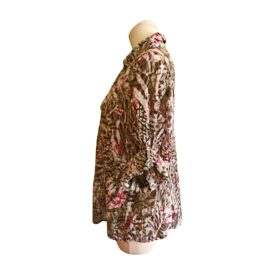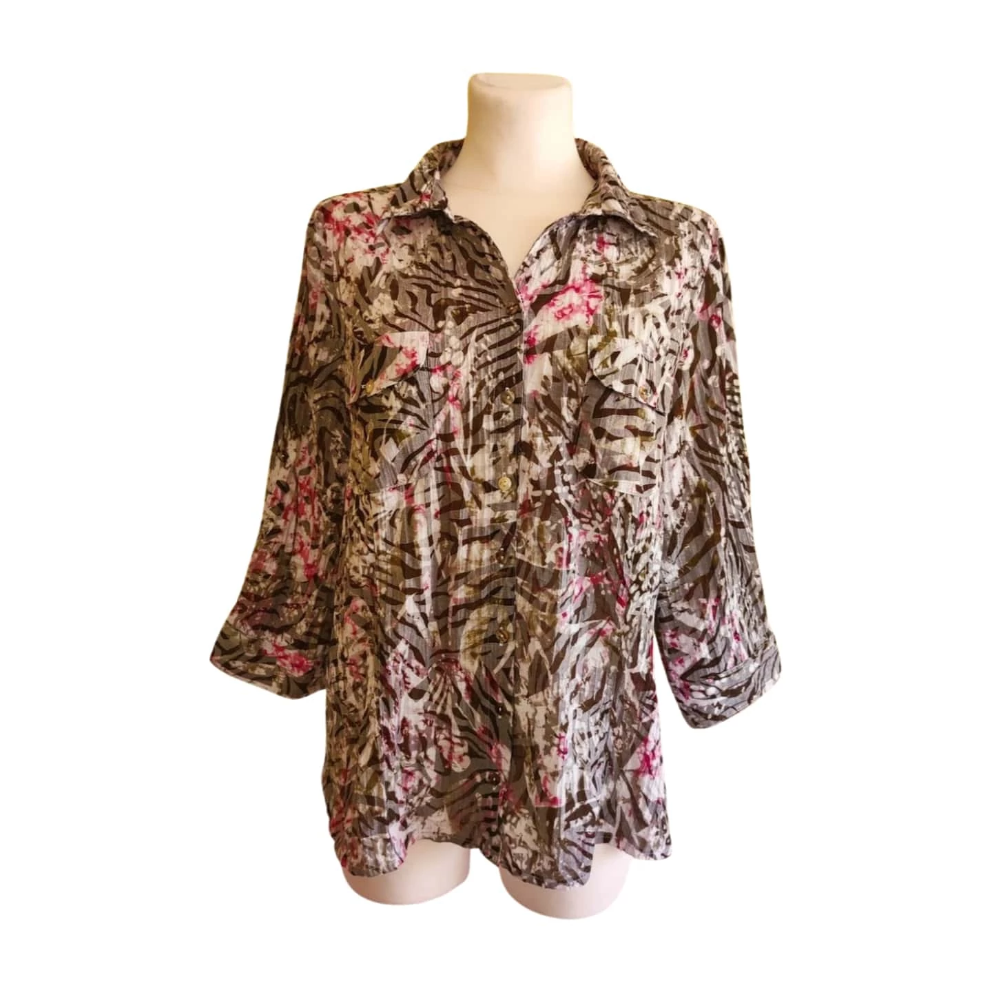 Ez a Michele Boyard szürke mintás női blúz egy csinos, nőies darab, amely kombinálható több stílusú ruhadarabbal, legyen az nőies vagy sportosabb. Rugalmas puha anyaga kényelmes viseletté teszi. Jól mutat egy farmerrel ugyanúgy, mint egy nőies szett részeként. Ujja felhajtható, felgombolható. Ajánlott átlagos alkatú hölgyeknek.