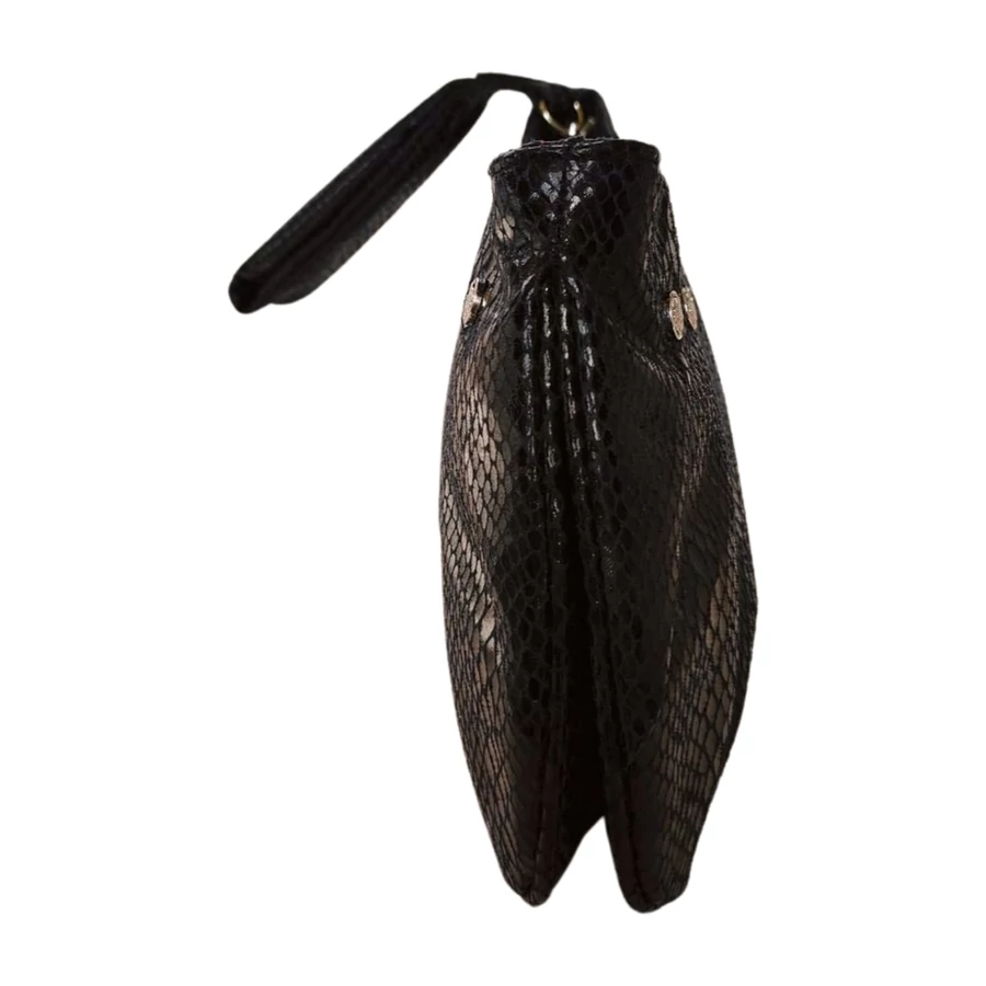 Ez a Ricarda M fekete elegáns női kézitáska remek kiegészítője egy elegáns alkalmi viseletnek. Jól illik egy csodás koktélruhához vagy kosztümhöz, de megfelelő választás estélyi ruha mellé is. Puha, párnázott tapintású anyaga nagyon feldobja egyszerűségét. Diszkrét aranyozott fémláncos pántja miatt vállon is hordható.