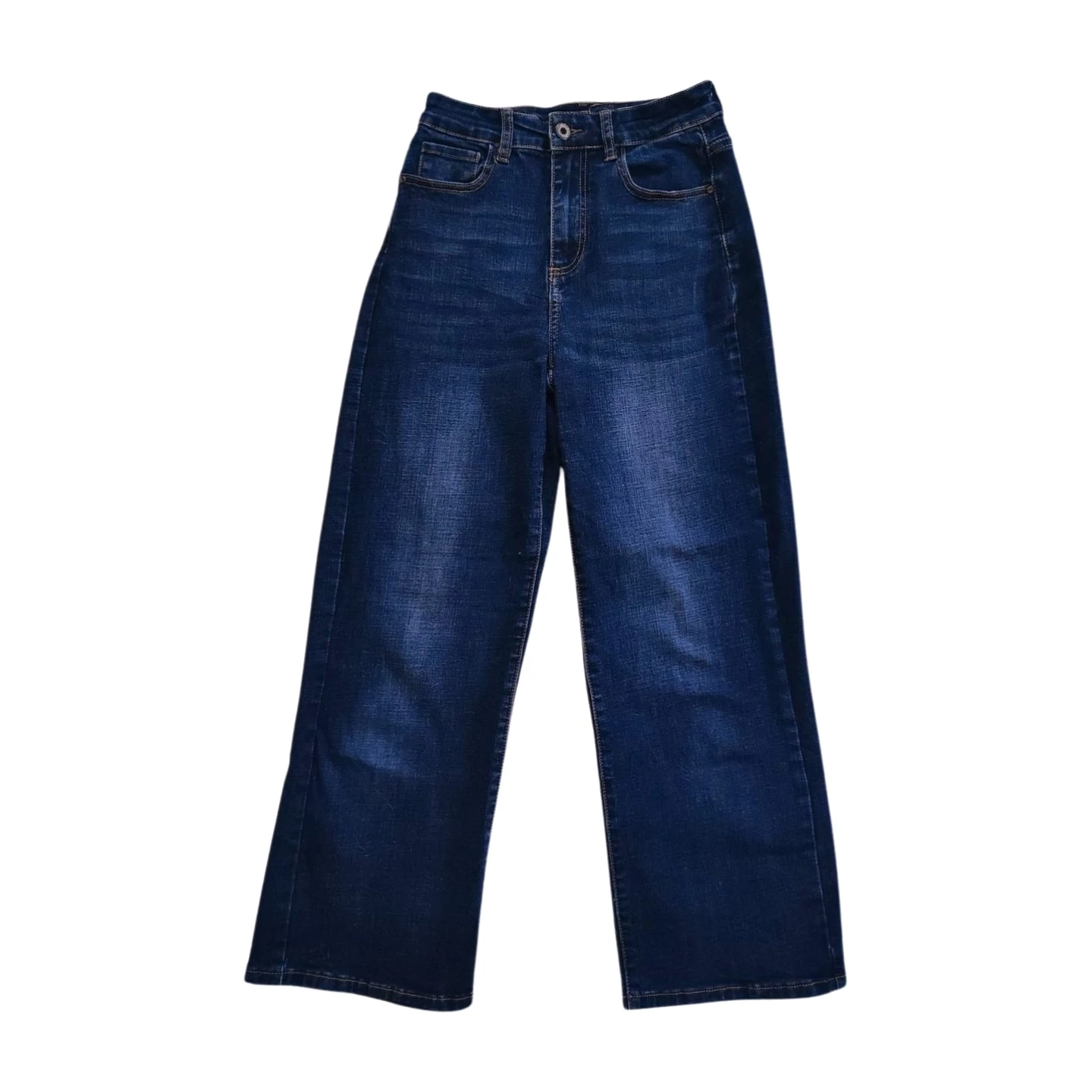 Ez a sötétkék bő szárú női farmernadrág fazonjával sokoldalú stílusú, amit a fiatalabbak épp úgy szívesen választanak, mint az érettebb korosztály. Könnyen kombinálható trendi, fiatalos vagy nőies darabokkal. Tiszta pamut anyagból készült, a szára egyenes szabású, magasabb derekú, amely kényelmessé teszi a viselését. Ajánlott átlagos és vékonyabb alkatú hölgyeknek.