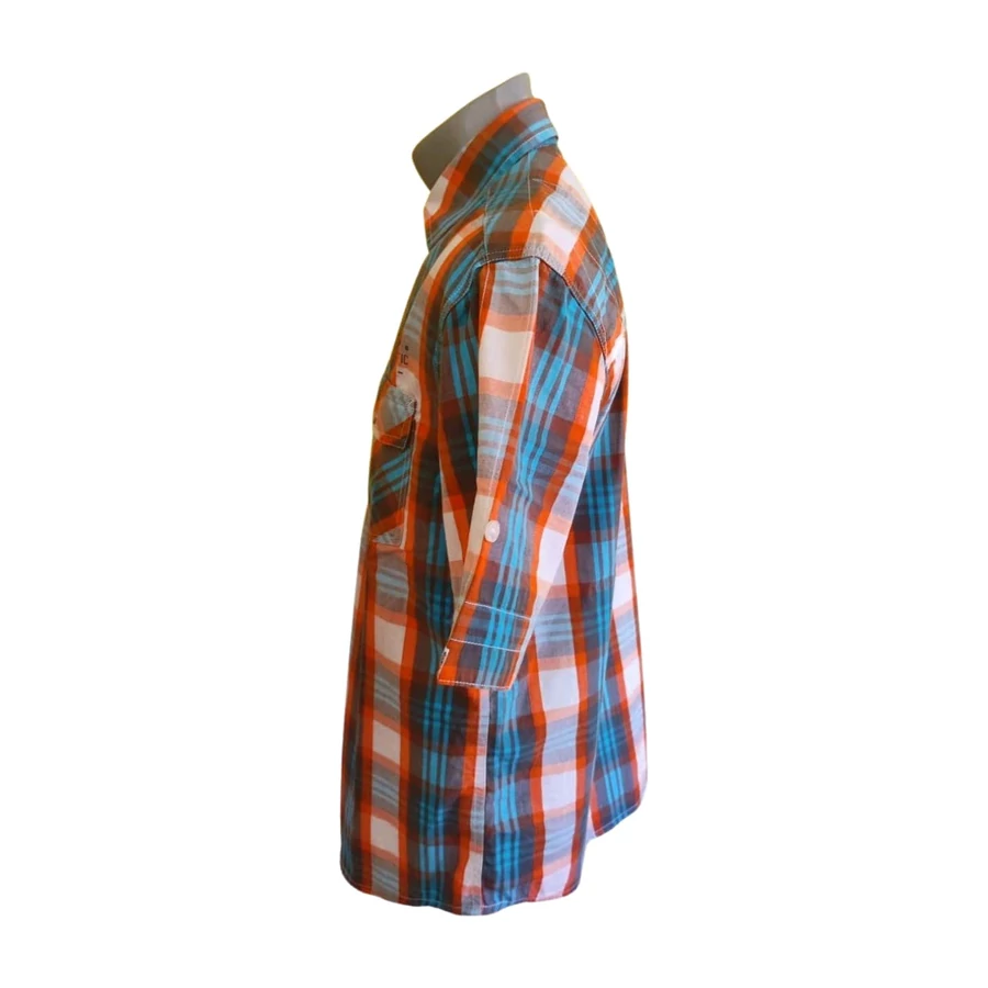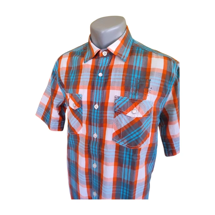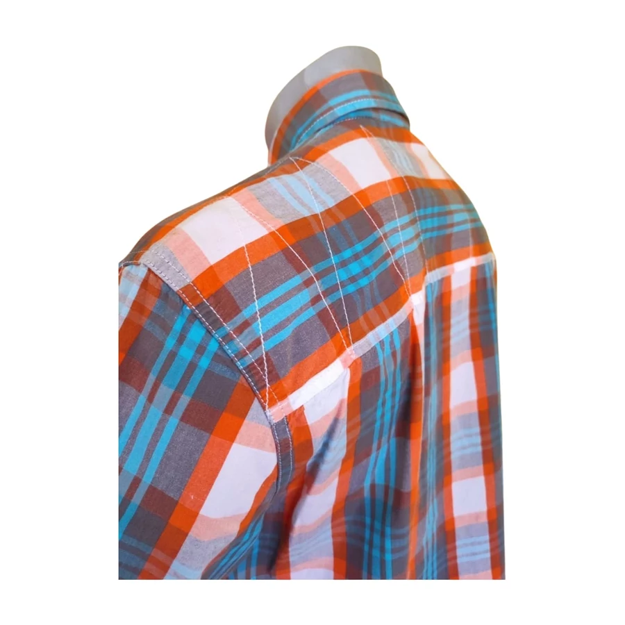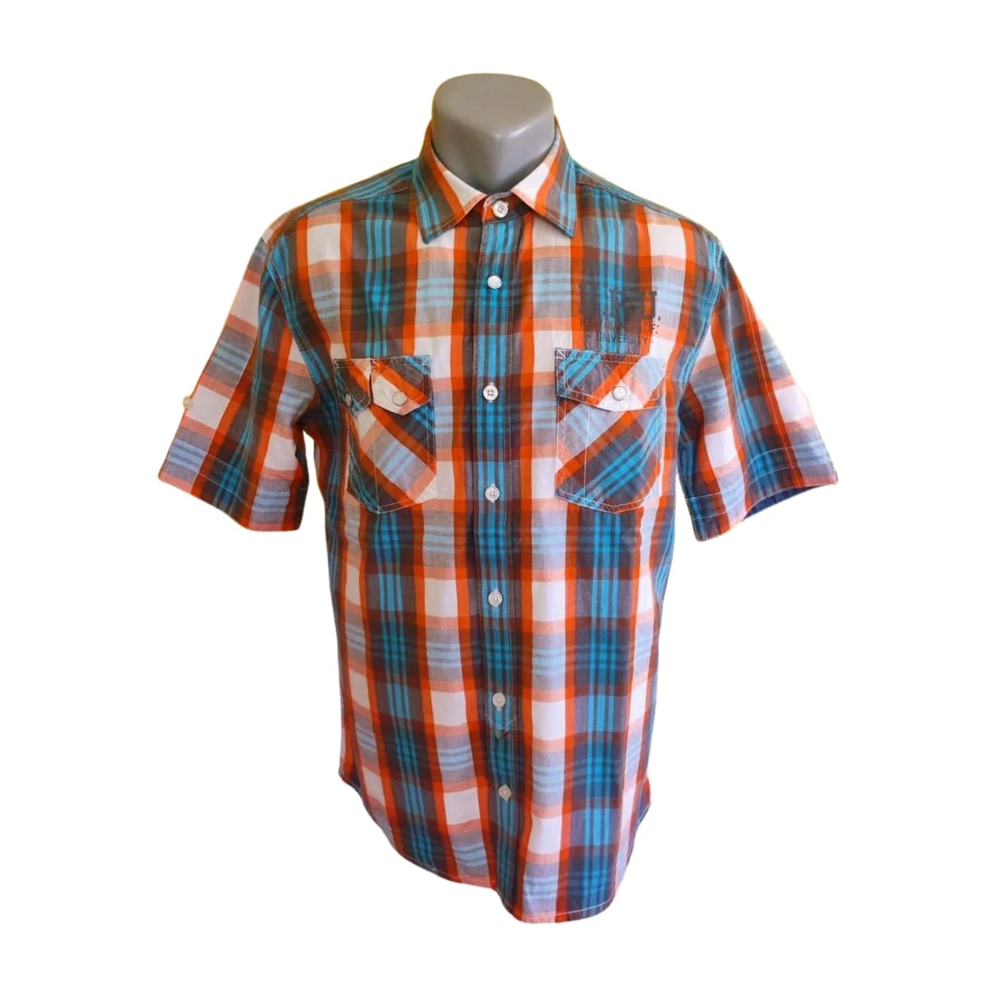 Ez a Tantum O.N. narancs színű kockás rövid ujjú férfi ing egy remek minőségi darab, amely jól mutat hétköznapi viseletként és sportos darabokkal kombinálva is. Anyaga pamut, amely kíméletes a bőrhöz. Sűrű szövésű, így az anyag nem áttetsző. Fazonja enyhén karcsúsított, fiatalos stílusú. Ez a darab ruhatárad fontos része lehet, ha stílusos, férfias megjelenést szeretnél elérni. Átlagos alkatú férfiaknak ajánlott.