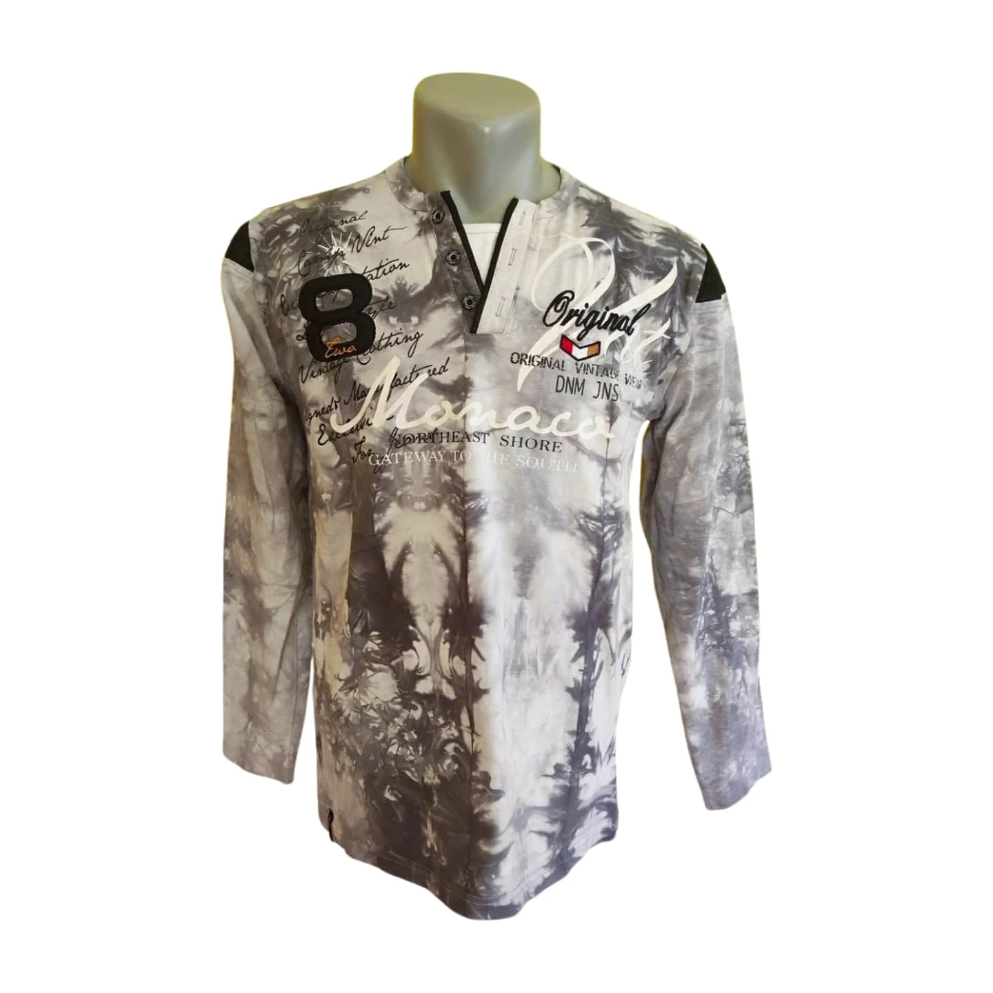 Ez a Violento szürke batikolt mintájú férfi felső egy sportos, fiatalos darab, ami jól kombinálható egy kényelmes farmerrel vagy más laza kiegészítőkkel. Kiváló választás egy hétköznapi szetthez vagy kikapcsolódáshoz, programokhoz. Puha és rugalmas pamut anyaga miatt nagyon komfortos viselet. Ajánlott átlagos alkatú férfiaknak.